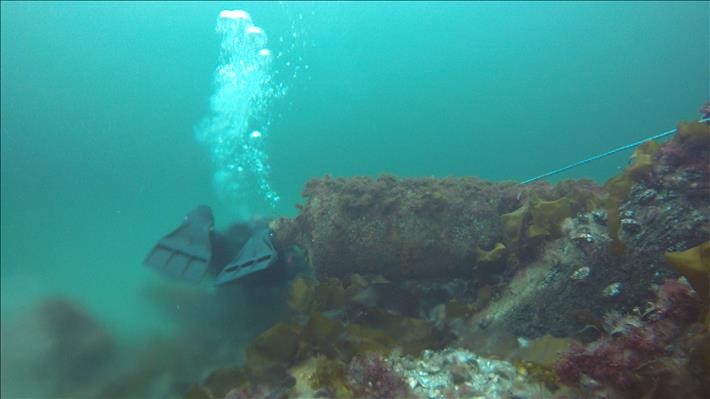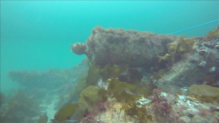 Vraget ligger på 9-12 m vand, og på denne dag lå springlaget dybere. Vi dykkede således i det vinterklare overfladevand, og sigten var fremragende!! Langt over 20 m - vi kunne sagtens se på tværs af skibet og godt halvdelen af dets længde. På vraget ligger der mindst 16 store 12-14 punds jernkanoner. De ligger spredt ud over vraget på bunden og står skråt op ad dets sider.